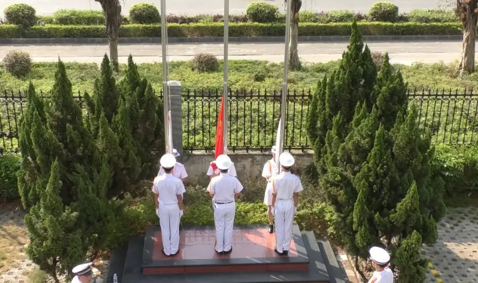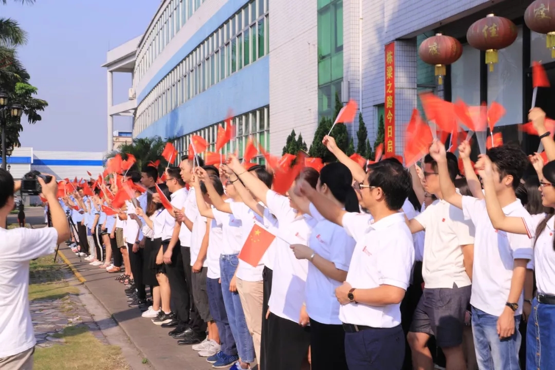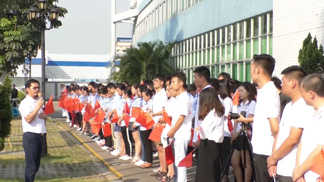 2019年9月30日,星期一,十一國(guó)慶節(jié)前夕,棟方股份公司大樓前面空地、數(shù)百次國(guó)旗升起的地方,今天迎來(lái)了一次特殊的周一升國(guó)旗儀式,因?yàn)槊魈炀褪俏覀儌ゴ笞鎳?guó)母親的七十華誕,七十載壯麗歷程,賦予了今天棟方企業(yè)早會(huì)升旗儀式不同尋常的意義。
