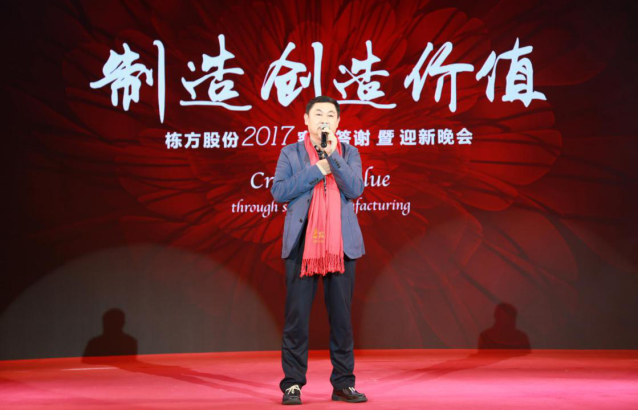 2017年1月12日,棟方股份“制造創(chuàng)造價(jià)值”2017客戶答謝暨迎新晚會(huì)在廣州華鉅君悅大酒店盛大舉行。棟方股份董事長唐新明先生、青島金王集團(tuán)董事總經(jīng)理唐風(fēng)杰先生與數(shù)百名棟方人盛邀棟方客戶、合作伙伴及行業(yè)內(nèi)外眾多重量級(jí)嘉賓,齊聚花城,共襄盛舉。