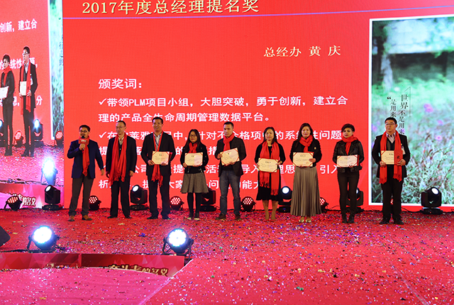 正如唐董所言,2017是不平凡的一年!過去的一年,公司除成功達成重大項目之外,還涌現(xiàn)了大批優(yōu)秀的團隊、個人。為感謝他們在各自崗位上付諸的努力,公司依次頒發(fā)了優(yōu)秀項目獎、優(yōu)秀團隊獎、明日之星獎、棟方風范獎、總經(jīng)理提名獎、十年忠誠獎等十三個獎項,共計4大項目、5個團隊與137名個人在此次年會上受到表彰。