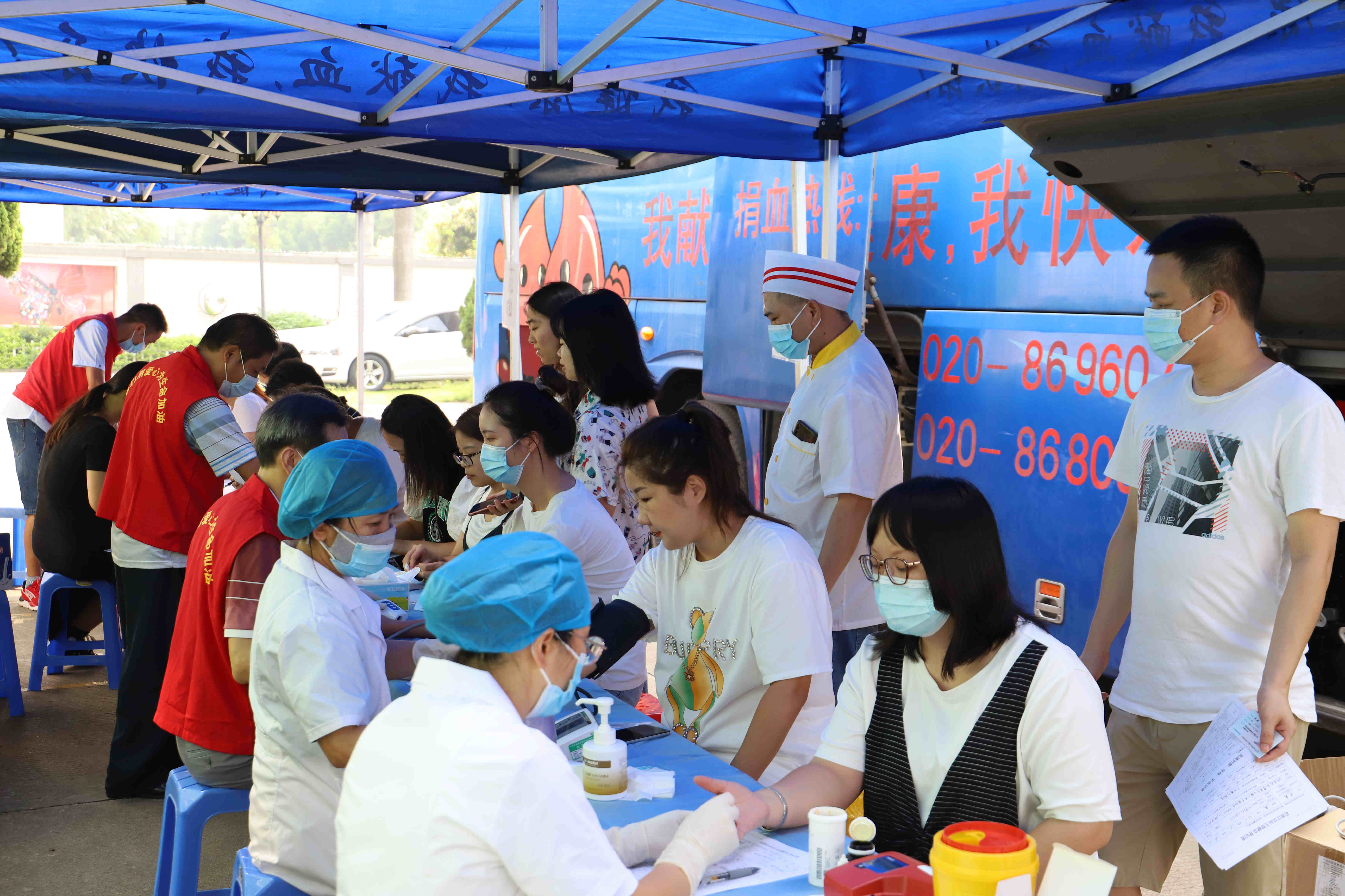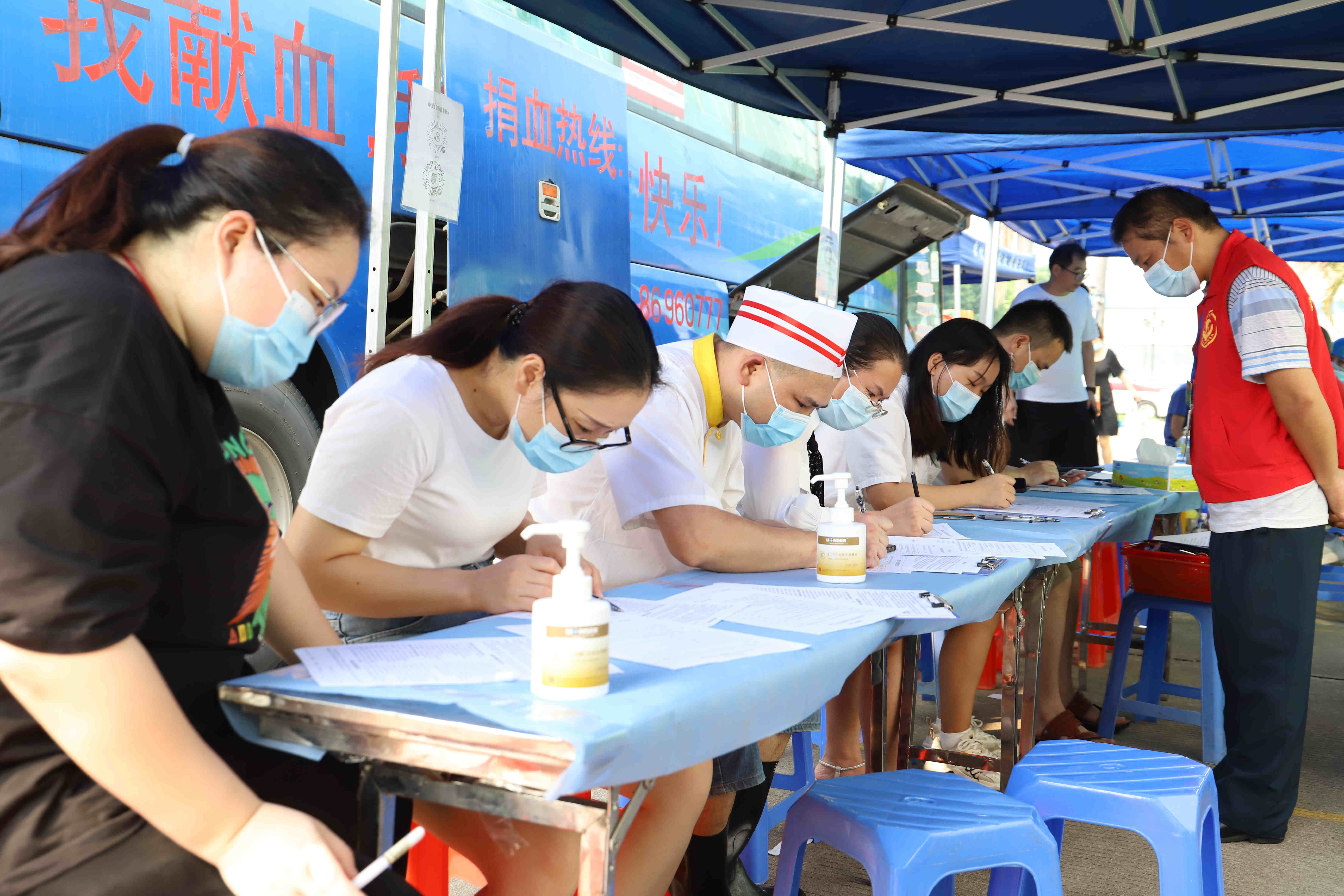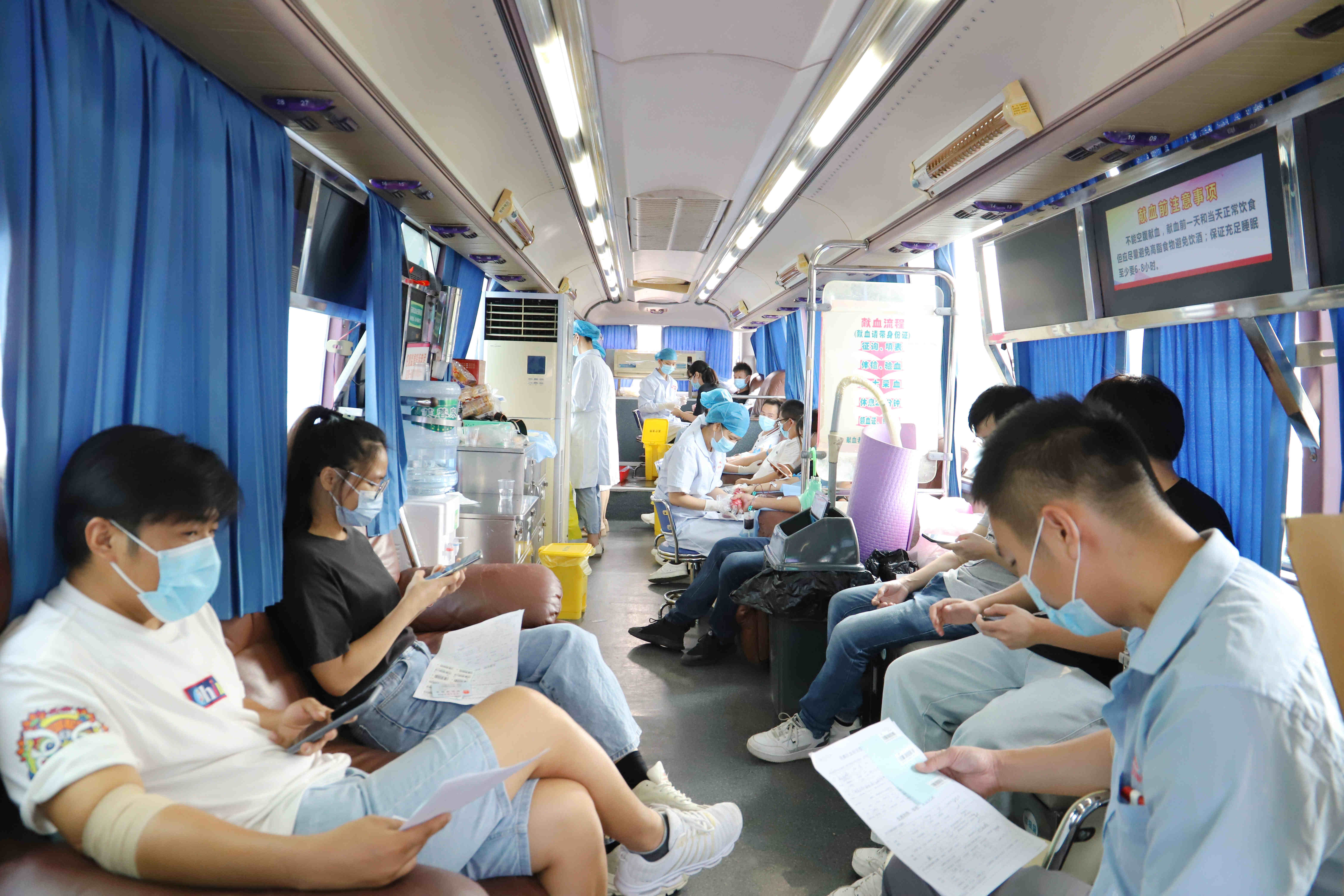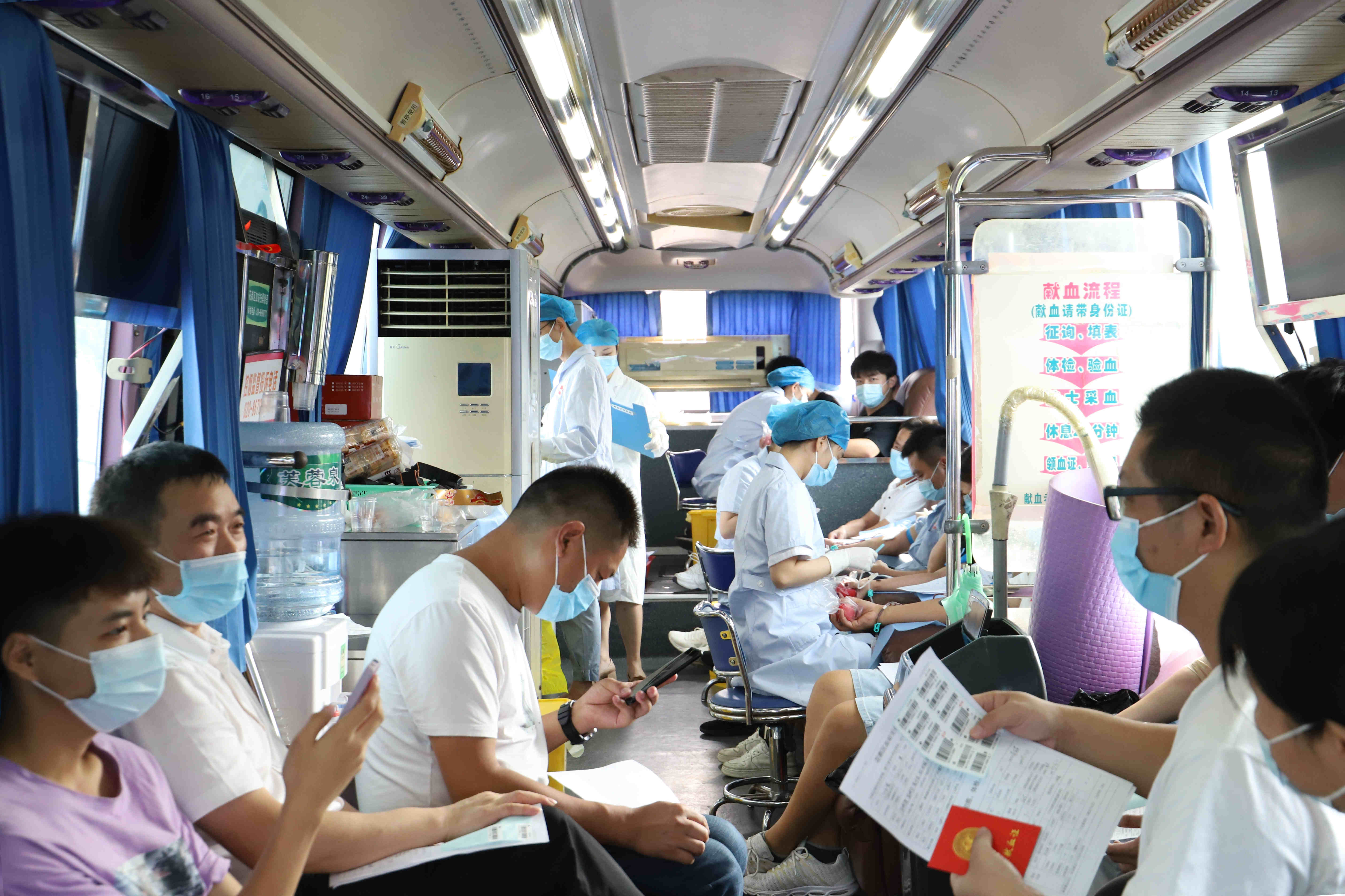 早上九點(diǎn),獻(xiàn)血員工在采血點(diǎn)集合,在工作人員的指引下,有條不紊地進(jìn)行身體檢查。通過篩選后,符合獻(xiàn)血標(biāo)準(zhǔn)的人員依次有序地踏上獻(xiàn)血車,紛紛起挽起衣袖獻(xiàn)出自己的一份愛心,