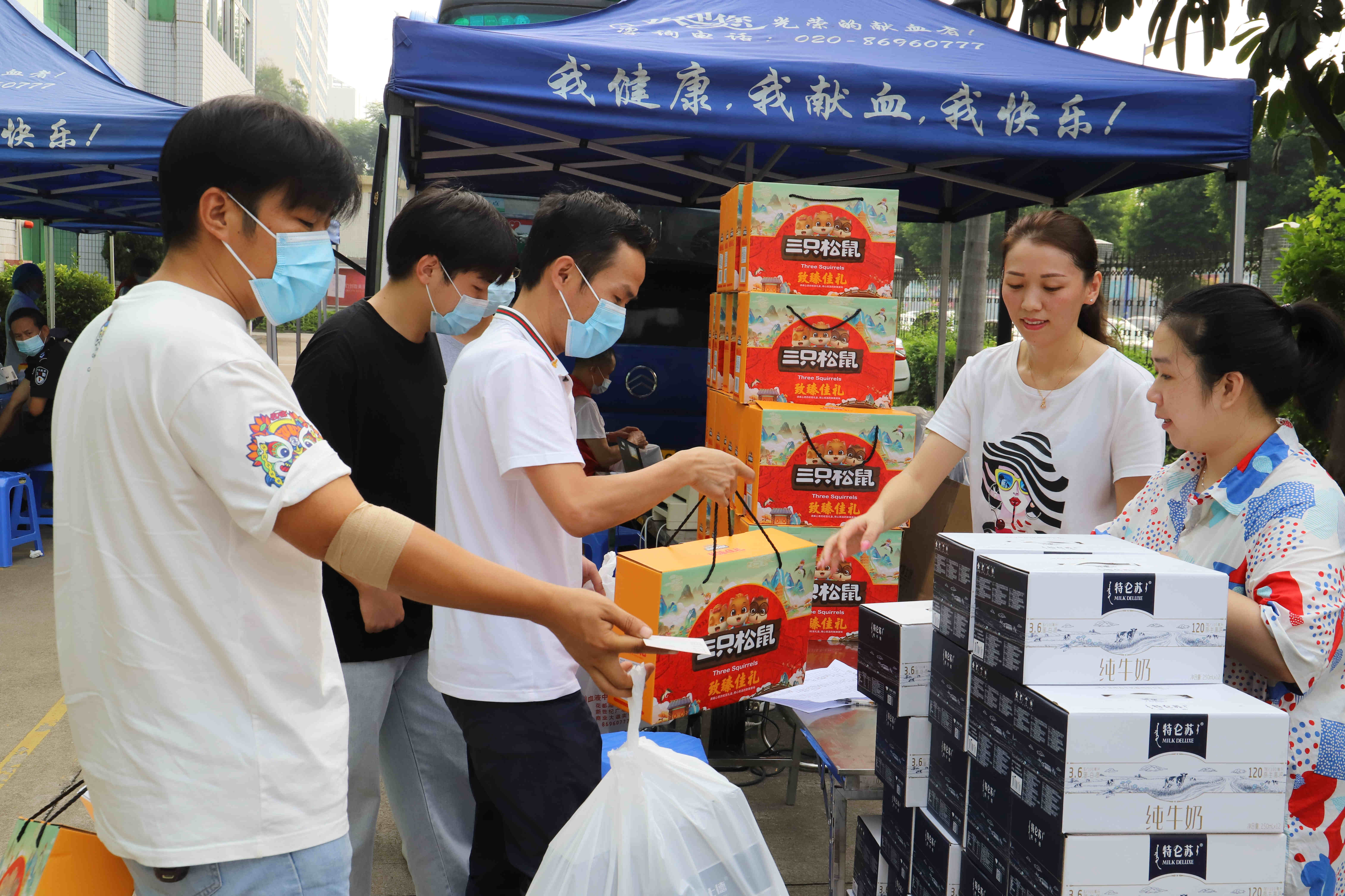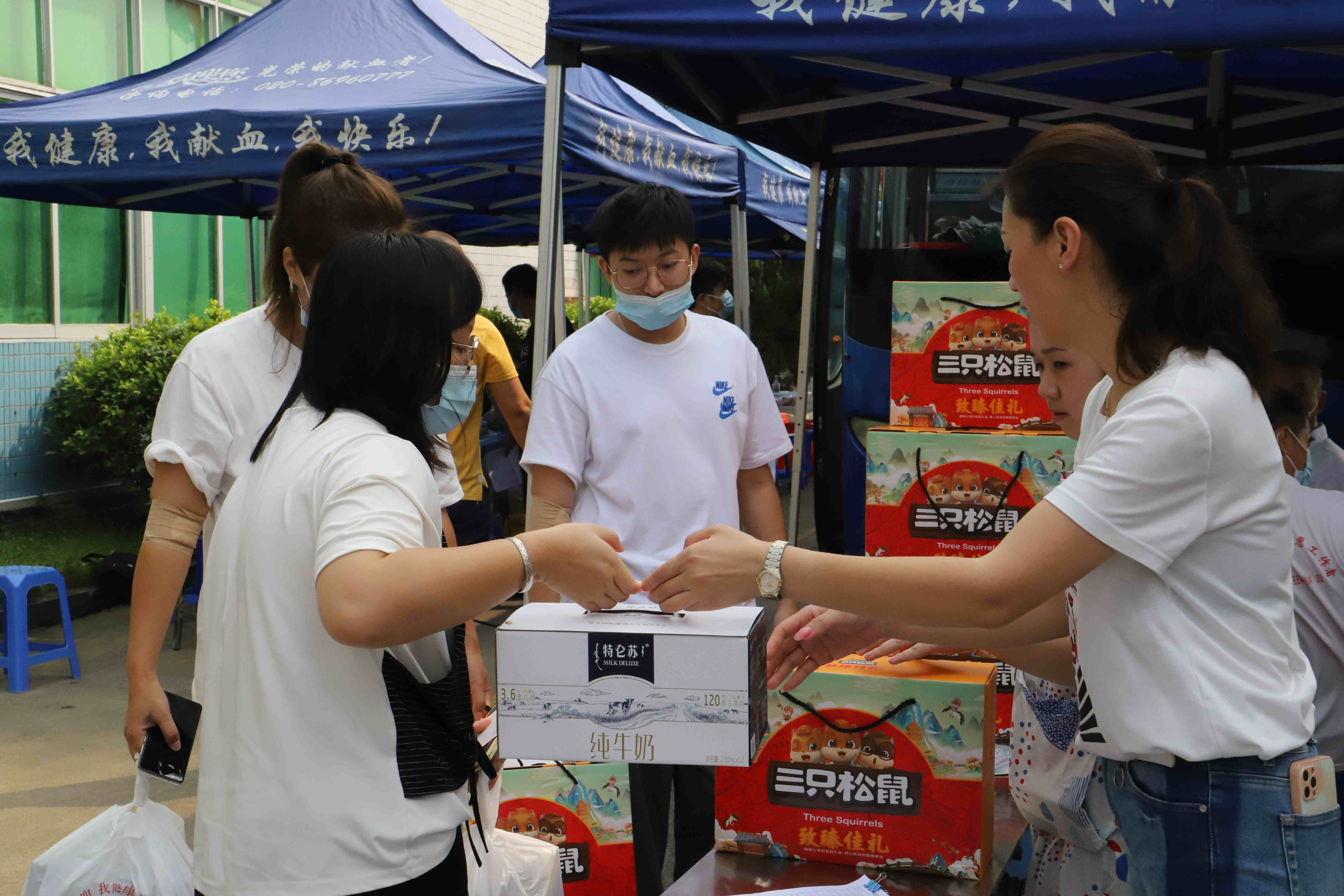 ▲工作人員為獻(xiàn)血者提供營養(yǎng)食品