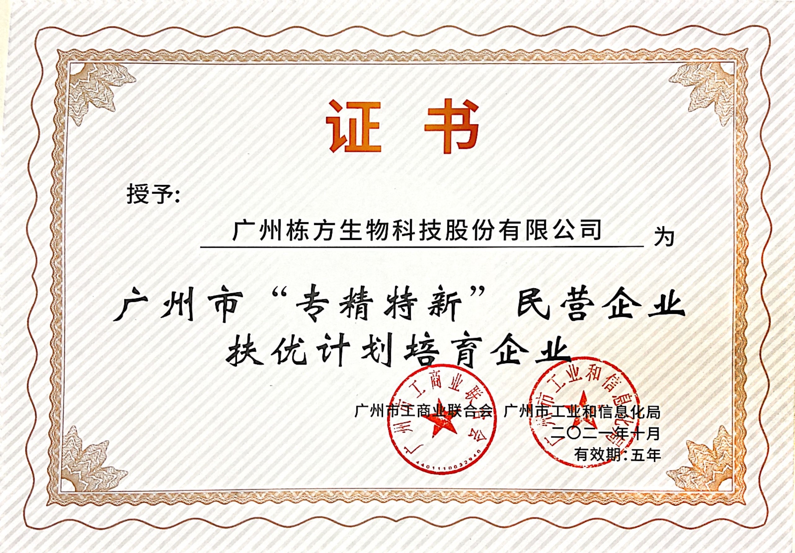 據(jù)悉,在本次遴選活動中,廣州市總共遴選1000家民營企業(yè),其中268家入選首批廣州市“專精特新”民營企業(yè)扶優(yōu)計劃培育企業(yè)。此次入選,充分體現(xiàn)了棟方股份在產(chǎn)品研發(fā)、智能制造、創(chuàng)新能力及未來發(fā)展前景得到了相關(guān)政府部門的充分肯定,有利于提升核心競爭力和知名度,對企業(yè)發(fā)展產(chǎn)生積極影響。